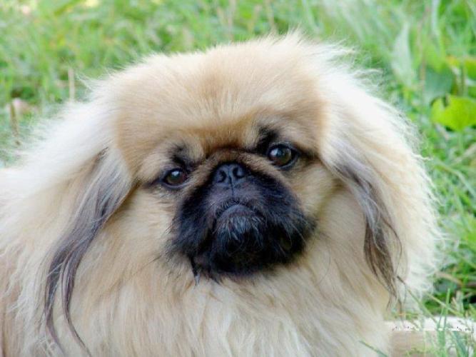 Пекинес – маленькая, почти игрушечная порода собак. Передняя часть массивная, с широкой грудной клеткой. Задняя часть тела немного уже передней. Лапы короткие и кривоватые, покрытые густой шерстью. Голова широкая. Область между ушей плоская. Глаза у собаки выпуклые и широко расставленные друг от друга. Они располагаются в одной плоскости с мордочкой. Сама мордочка приплюснутой формы, со складкой, проходящей над носом от одной щеки до другой. Носик широкий, приплюснутый, с влажным блеском. Он имеет черный окрас. Губы пухлые, плотно прилегающие друг к другу. Когда рот собаки закрыт, ни языка, ни зубов видно быть не должно. Пекинес полностью покрыт густой шерстью. У собаки имеется своеобразный шерстистый воротничок вокруг головы. Ушки у собаки висячие, средние по размеру, плотно прилегают к голове, они покрыты длинной шерстью. Хвост длинный, так же как и лапы, покрытый густой и длинной шерстью. Своим внешним видом собаки напоминают львов. Они даже передвигаются как львы - вальяжно.