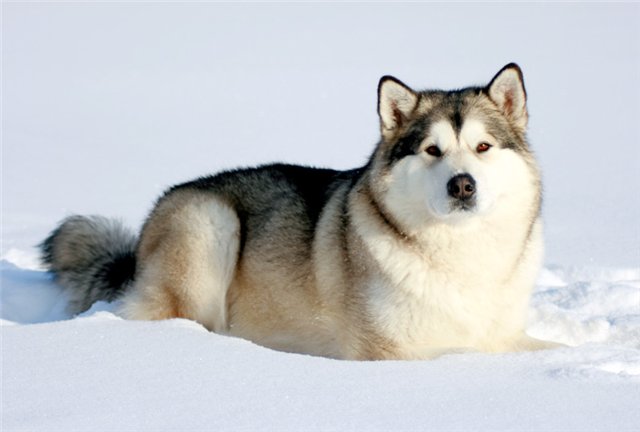 Эта собака появилась на Аляске около двух— трех тысяч лет назад. Считается, что предком аляскинского маламута был арктический волк, поэтому окрас шерсти у данной породы напоминает окрас волка — все оттенки серого, однако встречаются представители породы песочного, рыжего и даже белого цвета. Это очень красивая собака с хорошо развитой мускулатурой, обладающая атлетическим сложением, достаточно выносливая, что позволяет ей без усилий переносить на значительные расстояния тяжелые грузы. Крупные и мощные лапы с опущенными подушечками помогают аляскинскому маламуту уверенно, не проваливаясь, передвигаться по снегу, благодаря густому подшерстку и морозы ему не страшны. Представители этой породы энергичны, общительны, отличаются радушным характером, в то же время иногда могут проявлять упрямство, им не свойственно подчинение, в связи с этим уже в раннем детстве следует дать понять собаке, что вы — лидер. Маламуты обладают устойчивой психикой, не агрессивны, не могут напасть на человека, поэтому бессмысленно пытаться сделать из нее сторожа. Ухаживать за представителями этой породы довольно сложно: необходимо регулярно расчесывать густую шерсть собаки, следить за тем, чтобы она не перегревалась, в жаркие дни обеспечивать животное обильным питьем. |